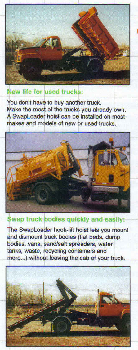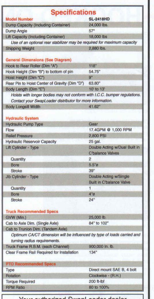 | The SL-2418HD provides big machine power and durability in a compact unit. SwapLoader gets the job done with low-pressure hydraulics. Improve your cash flow using one truck with many bodies |