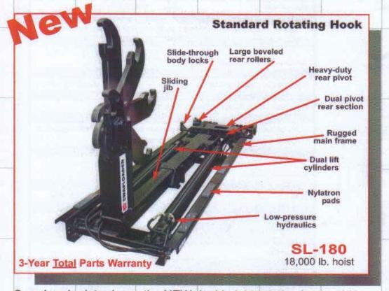 | Stay with one hook height or go with two: SwapLoader still offers the 36" fixed hook height hoist in the SL-180 model. Depending on your containers or bodies, the choice is yours to either go with the fixed height or the rotating hook hoist. |