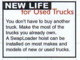 | Increase productivity and profitability: One truck equipped with the SwapLoader hook-lift hoist reduces the need for a large fleet of trucks. SwapLoader hook-lift hoists can carry many different bodies and perform many different jobs. |