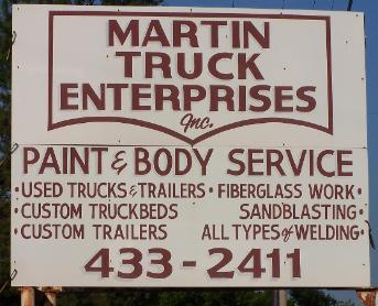 | Martin Truck Enterprises of Boyd, Inc. 701 E. Rock Island * Hwy 114 * Boyd, Texas * 76023 Shop 940-433-2075 *Toll Free 866-433-2075 * FAX 940-433-8800 |