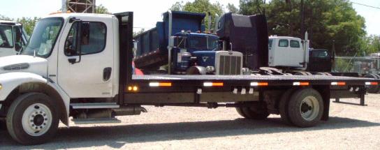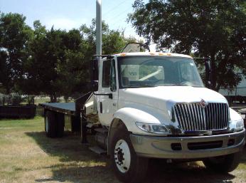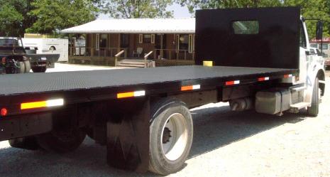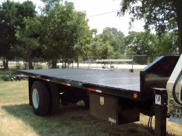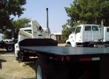| We mounted this 22' Flatbed behind the knuckleboom crane already installed. Note the different bulkhead than our other flatbeds. We can build any bed to suit your needs! |