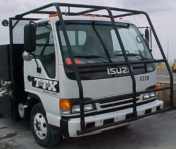 | This is a custom service bed we created for a local company that works in the rail yard. Their trucks tend to get bumped around quite a bit, so we installed deflector bars on the cabs. The floor of the bed was treated with Rhino Coat to prevent slipping. |